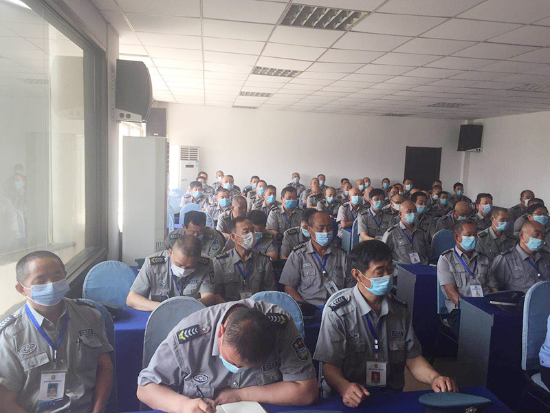 为了做好特殊时期校园安保工作,加强校园保安守卫、防护意识,切实提高保安人员的业务素质和应对处置突发事件的能力,结合区教体局、区公安分局关于加强校园安保工作的会议指示精神,烟台市福山区保安服务公司充分重视,2020年6月6日,公司培训部在公司业务培训中心召开全体校园保安中队长、保安队员培训工作会议,总结复课复学一周来的校园安保工作情况,作出下一步工作要求,要求公司各部门、各中队加强工作管理,自我剖析、自查自纠,一手抓业务素质的提高,一手抓安全隐患的整改,尤其要抓好保安队员的“思想教育”工作,提高保安队伍整体服务理念和责任意识,并针对校园保安员业务理论学习、思想道德教育、疫情防控相关知识、安保器械使用和管理、防暴应急演练等进行专项教学。